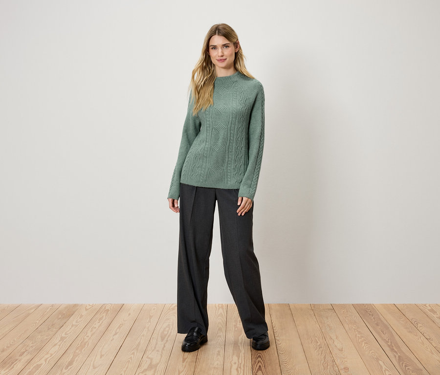 Kablo Desenli Kalın Örgü Süveter, Adaçayı Rengi