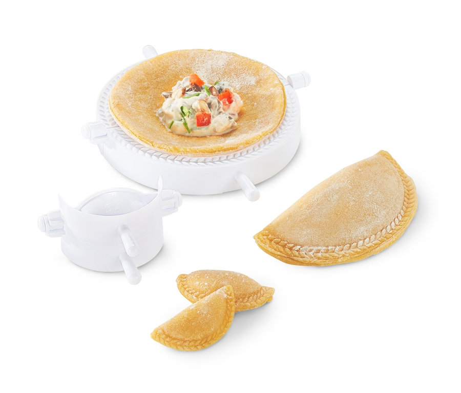 Herkes erişte satın alabilir, ama bu hamur paketi kalıbı seti ile kendiniz de kolayca yapabilirsiniz; çünkü hamur paketleri için iki adet kalıp erişteden, şerif hamurdan veya Strudel hamurundan yemekler üretmek için tamamen yeni olanaklar sunar. Kaliteli plastikten pratik mutfak yardımcısı hamur paketlerinin kenarlarını dekoratif zeytin dalı motidi ile kapatır. Sadece hamurdan en sevdiğiniz şekli çıkarın. Sofrada daha da fazla Akdeniz çeşidi olması için tarif önerileri mevcuttur.