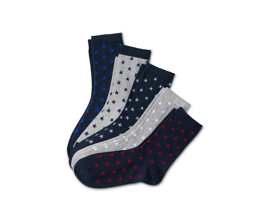 - 1x lacivert, kırmızı yıldız desenli, 1x kırçıllı gri, beyaz yıldız desenli, 1x lacivert, beyaz yıldız desenli, 1x kırçıllı gri, mavi yıldız desenli, 1x lacivert, mavi yıldız desenli