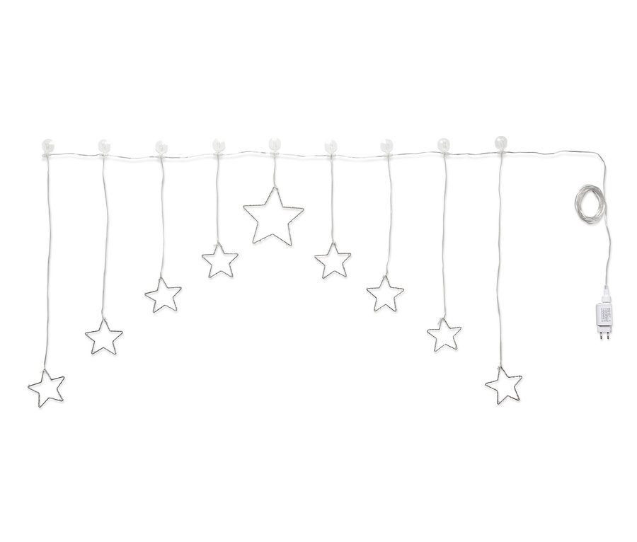 Yıldızlarla dolu bir pencere: Bu etkileyici parlayan perde LED yıldızları ile büyüyü odanıza getirecek. Perde bir büyük ve sekiz küçük yldızdan oluşur ve basitçe kanca ve vantuzlarla pencereye veya pervazına sabitlenir. Bu şekilde yıldızların parıldayan etkisi ve sallanan görüntüsü iyice artar.
