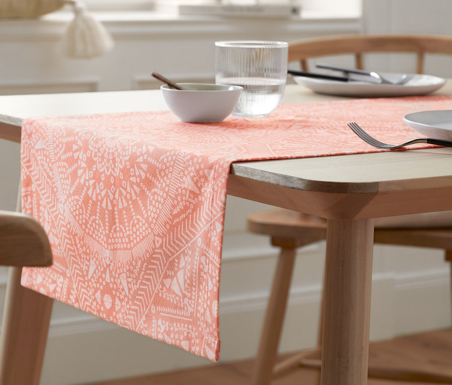 - Masa süslemeleri veya mekan dekorları için şık bir altlık olarak yazlık, kayısı renginde mandala baskılı