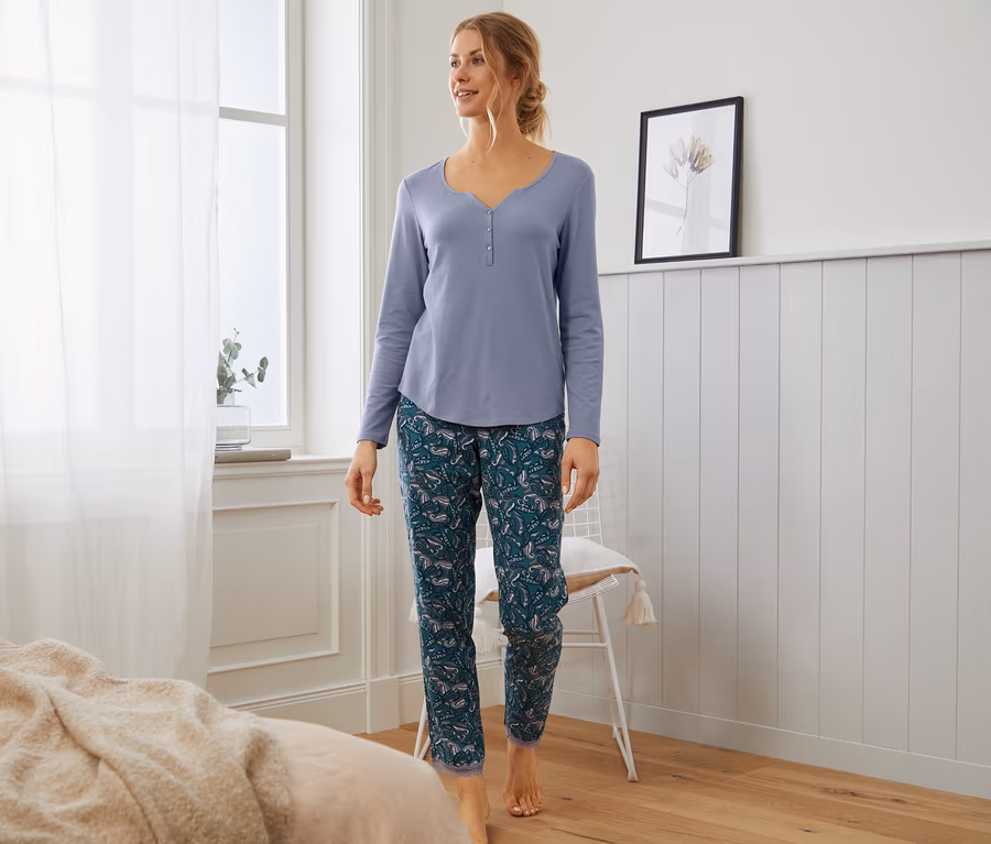 - Rahat ve yumuşak pamuklu viskoz karışımı kumaşlı kadın pijama takımı