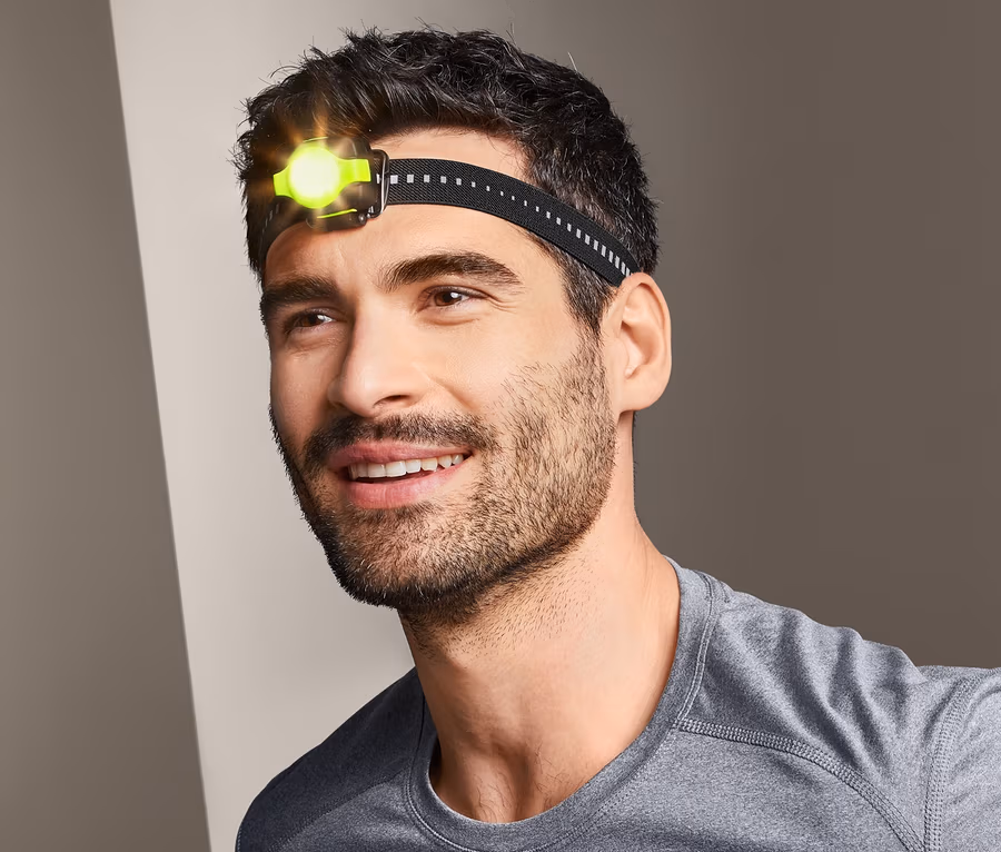 - Yumuşak, elastik baş bandı – genişliği ayarlanabilir ve reflektörlü