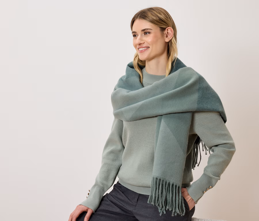 Püsküllü Desenli Dokuma Şal