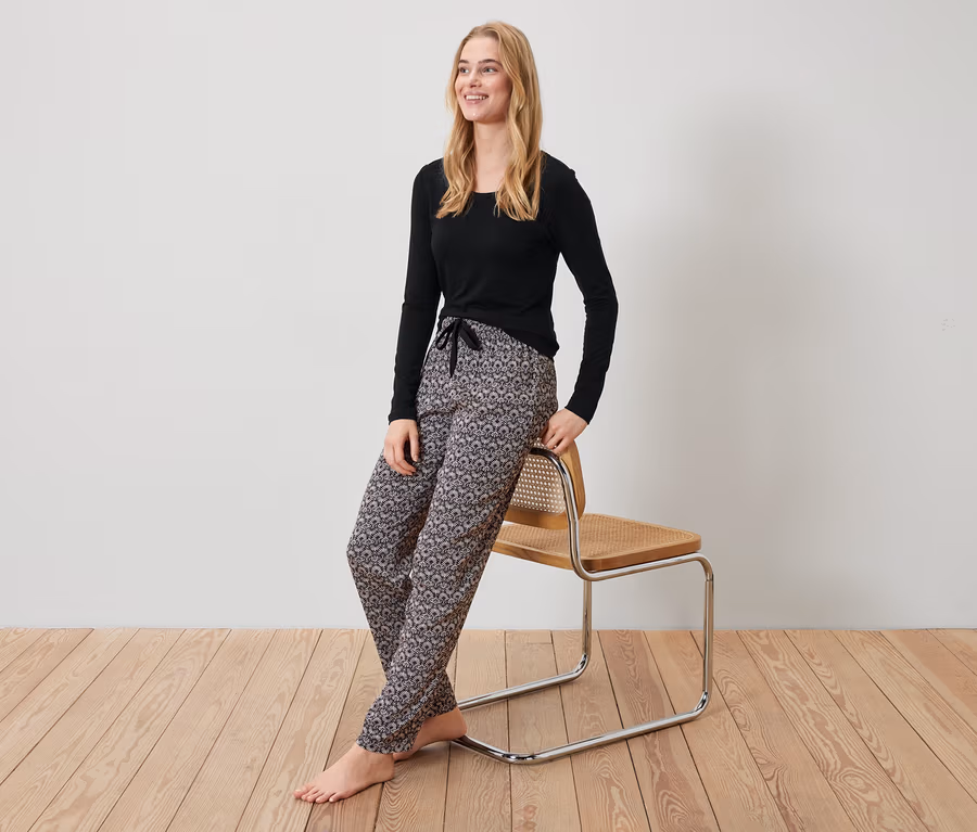 - Genişlik ayarı için elastik bel bantlı ve bağcıklı dokuma pijama altı