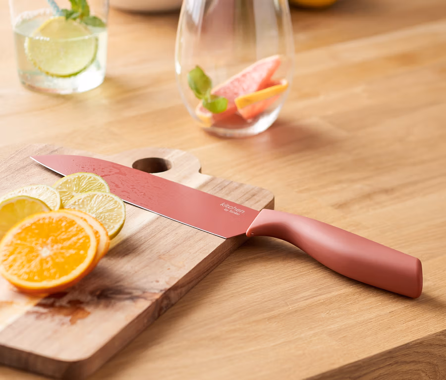 - Düz bilenmiş, yapışmaz kaplamalı büyük bıçak – Et, balık ve sebzeleri kesmek ve ayırmak için