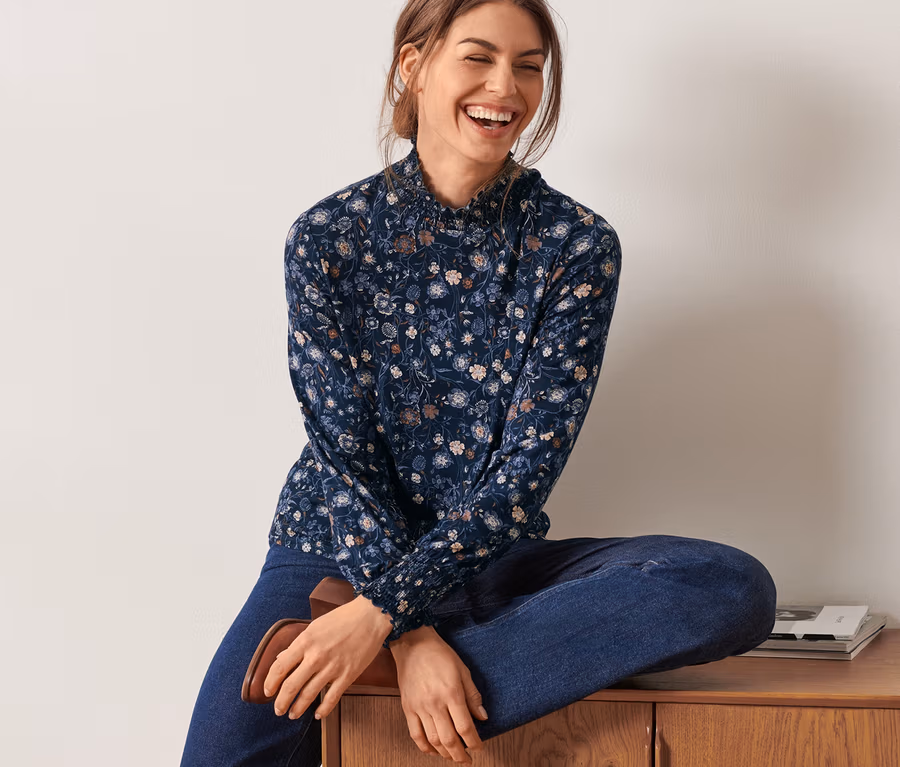- Bu bluz, sürdürülebilir ahşap fiberler içerir.
