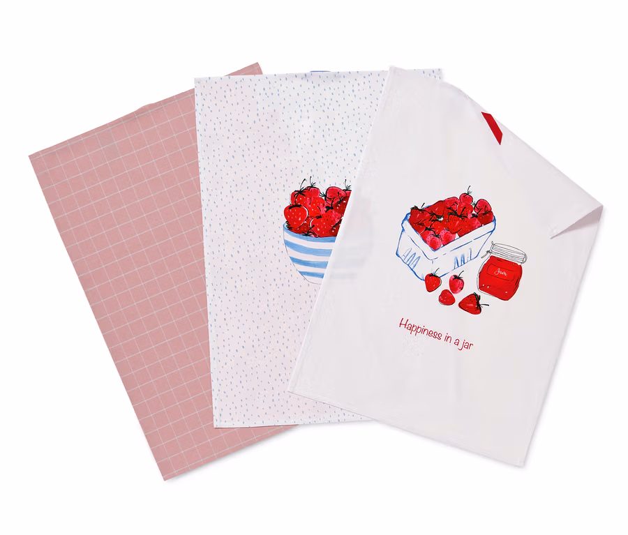 - 1x kırmızı-beyaz kareli, 2x kırmızı-mavi baskılı beyaz
