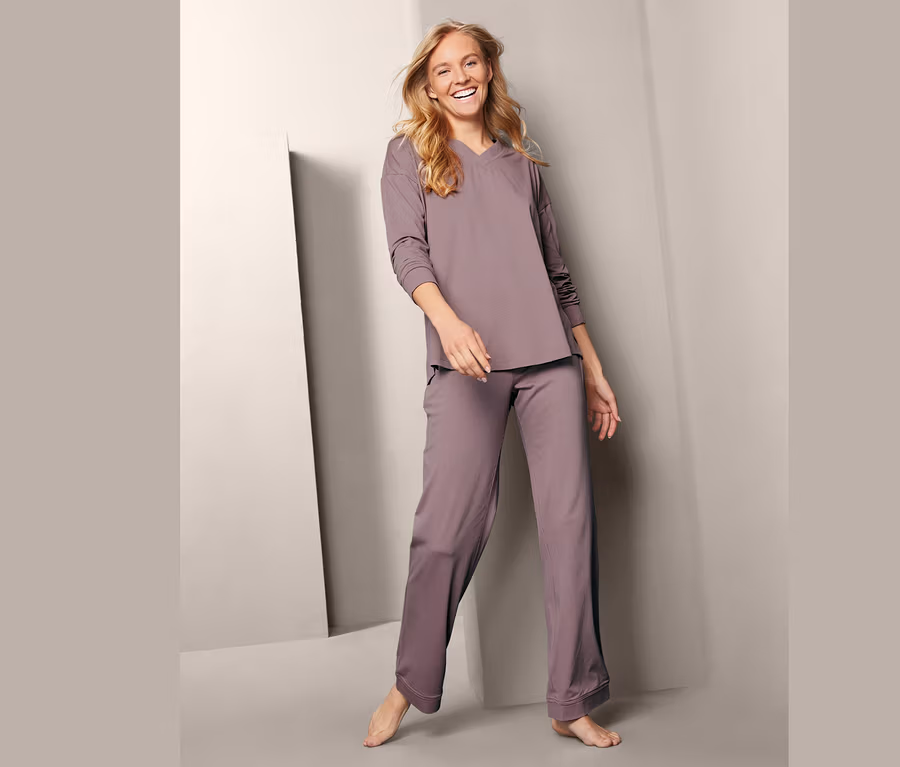 - Son derece sürdürülebilir, yumuşak liyosel pamuk karışımı kumaştan kadın pijaması