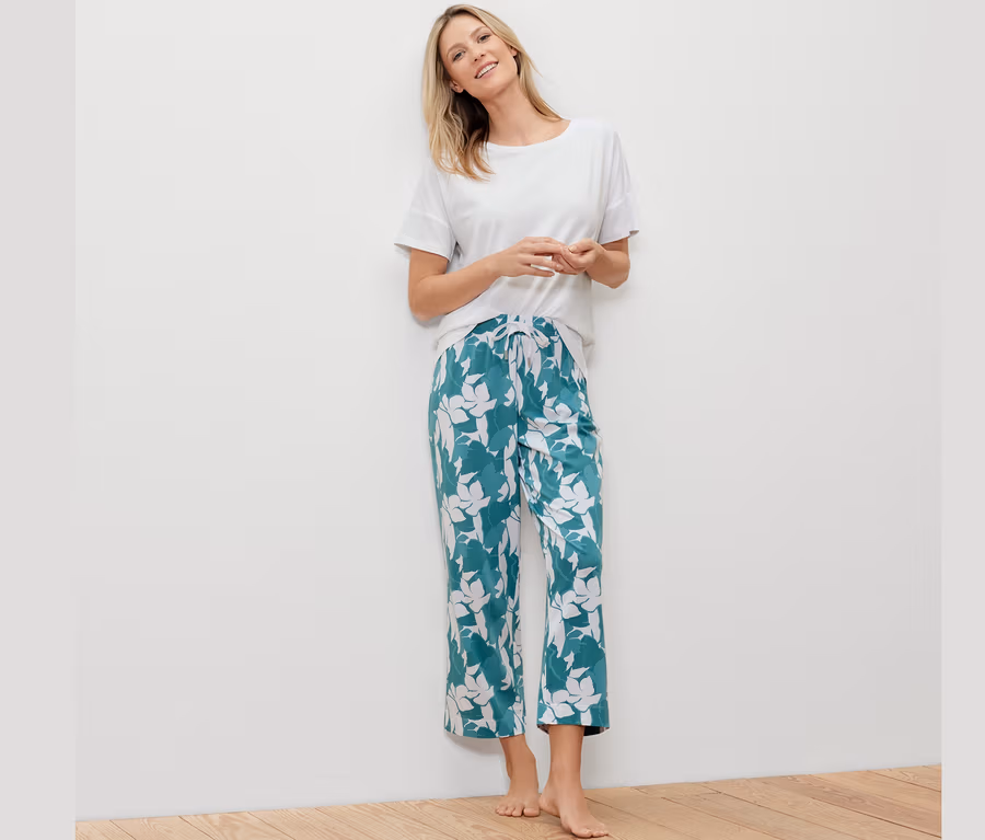 - Pijama altı tamamı beyaz-yeşil çiçek baskılı