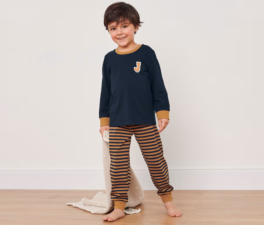 Organik Pamuklu Pijama Takımı, Mavi-Kahverengi
