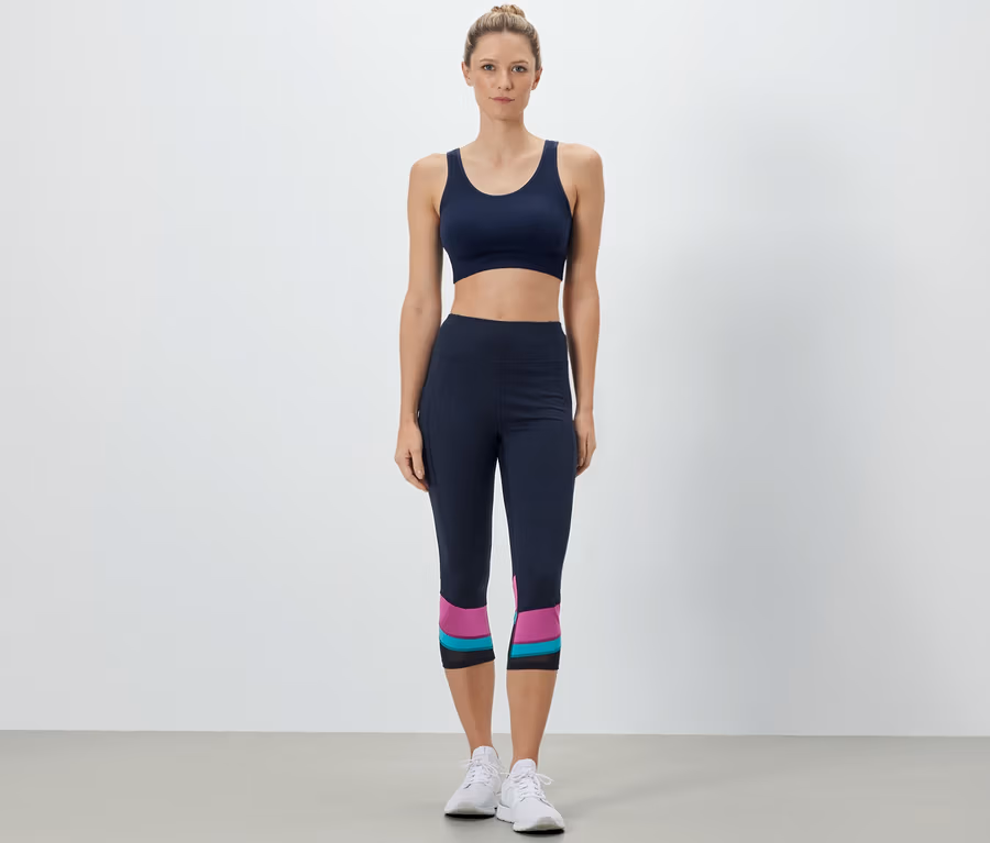- Bel ve diz altlarında şekillendirici Power Mesh bölgeler içeren kadın spor tayt