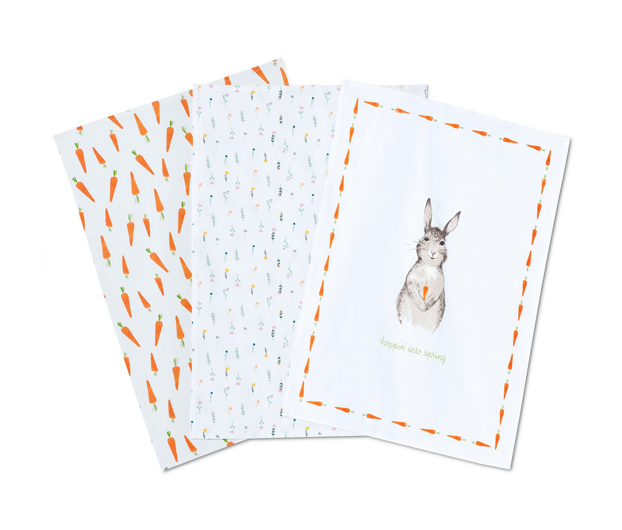 - 3'lü dekoratif set: tavşan motifi, lale motifi ve havuç motifi baskılı