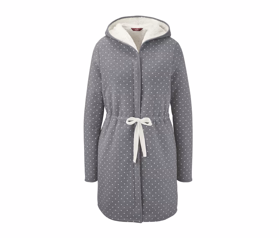 Eve geldiniz, gündelik kıyafetlerinizi çıkarttınız ve tamamen rahat, harika tüylü kıyafetin içine girdiniz! Tamamı yıldız baskılı sabahlık ekstra yumuşak pelüş astara sahiptir ve rahat şekilde sıcak tutan pamuklu karışımından üretilmiştir. Gizli bir fermuara, ilave bir kuşağa sahiptir ve yumuşak astarlı kapüşonun yanı sıra iki adet yan cep ile donatılmıştır. İster sabahlık, ister bornoz olarak ya da sadece rahatlamak için: bu kıyafet ile soğuk günlerde sarmalanma hissi gelir!