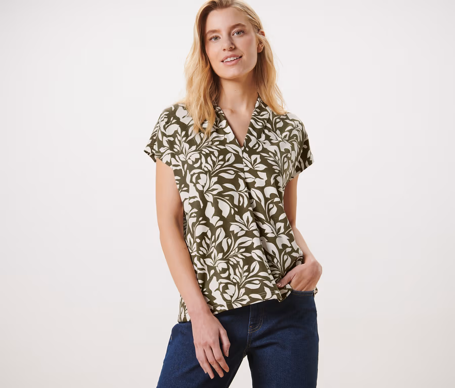 Baskılı Bluz, V Yakalı