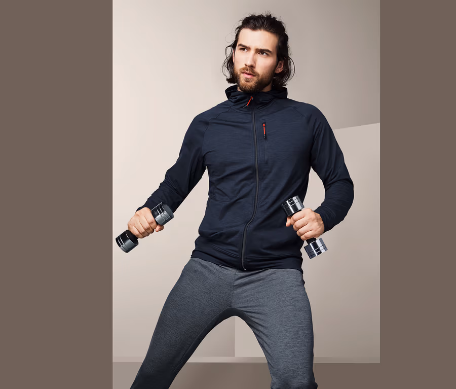 - Fermuarlı ve kapüşonlu rahat erkek koşu montu