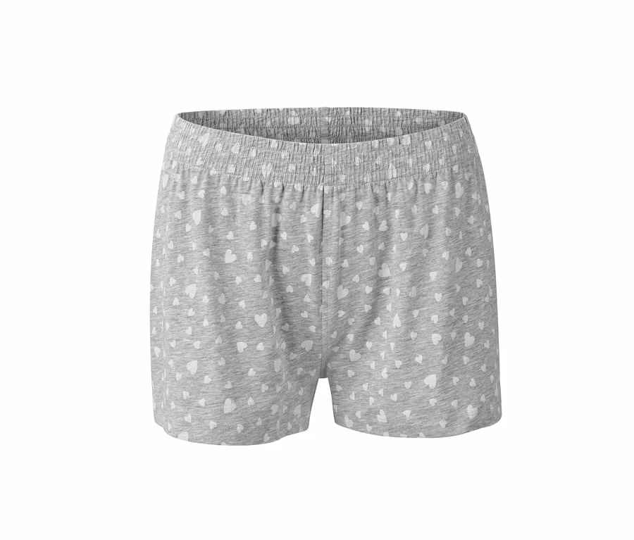 - Şort tamamı beyaz kalp baskılı kırçıllı gri
