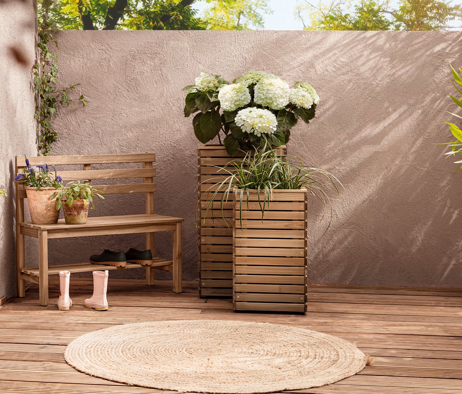 - Oturma alanının altında raf, örn. ayakkabı veya bahçe eşyaları için saklama alanı
