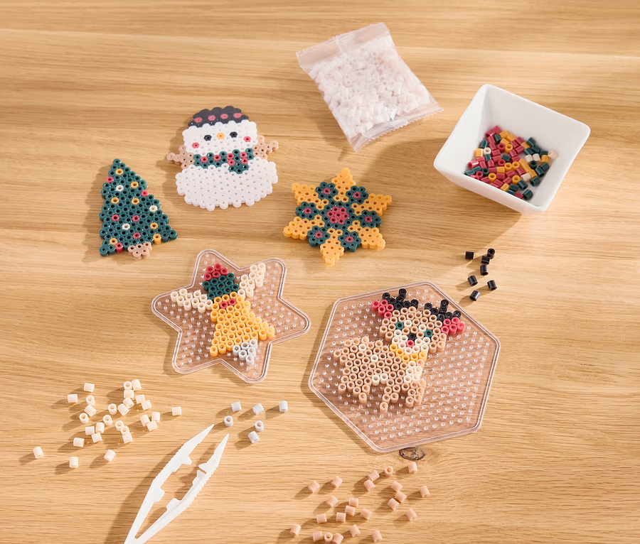 - 8 farklı renkte (her biri 250 adet) 2.000 adet ütüyle yapıştırılan boncuk, cımbız, altıgen şablon plakası, yıldız şablon plakası, A4 motif şablonu ve işleme talimatları dahildir