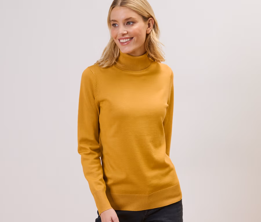 İnce Örgü Balıkçı Yaka Kazak, hardal sarısı