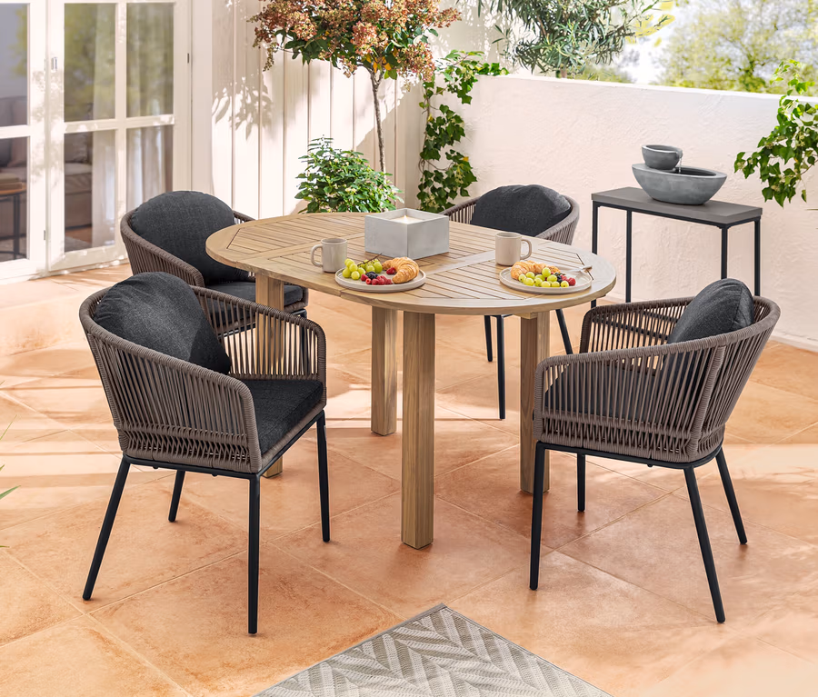 - Hava koşullarına dayanıklı ve hızlı kuruyan kumaş örgülü, dış mekan için uygun
