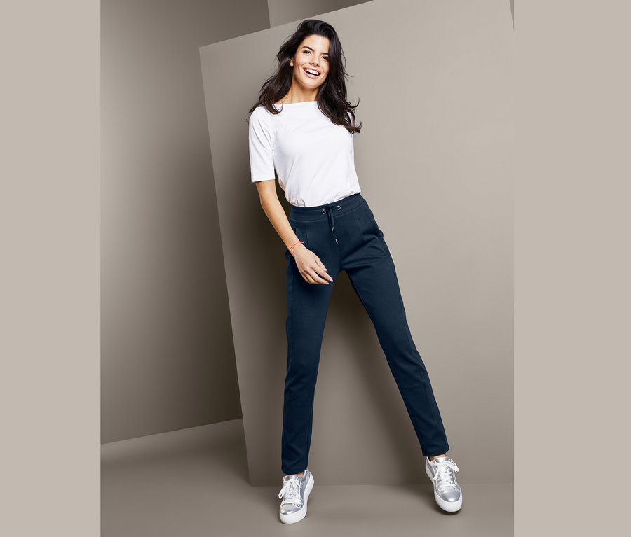 Spor pantolon sadece ismi yüzünden eşofman altını hatırlatmakla kalmaz, en az onun kadar rahattır – ancak çok daha şıktır ve her kıyafet için modaya uygun bir pantolon olarak giyilebilir.