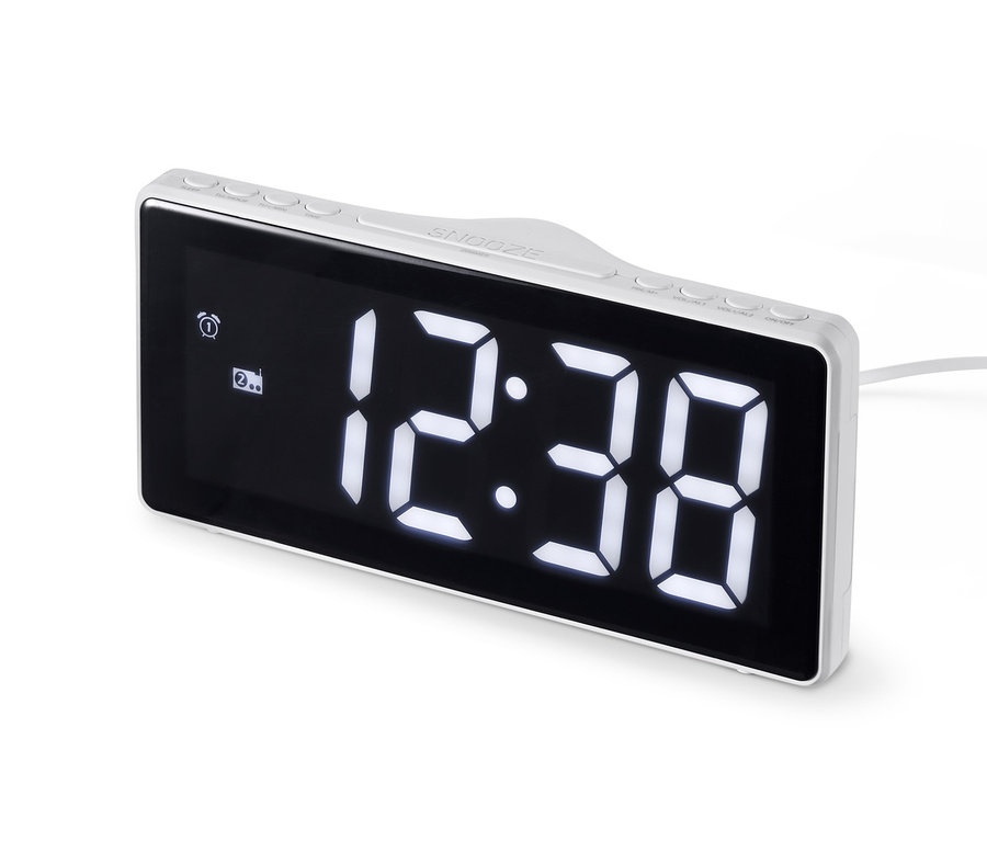 Böylece gerçekte uyanırsınız: Çalar saat fonksiyonu radyo ya da zil fonksiyonu olarak ayarlanabilir ve iki alarm zamana girme imkanını sunar. Ayrıca cihaz erteleme fonksiyonuna ve uyku zamanlayıcısına sahiptir. Destek pili elektrik kesintisi durumunda çalışmaya devam etmesini sağlar.