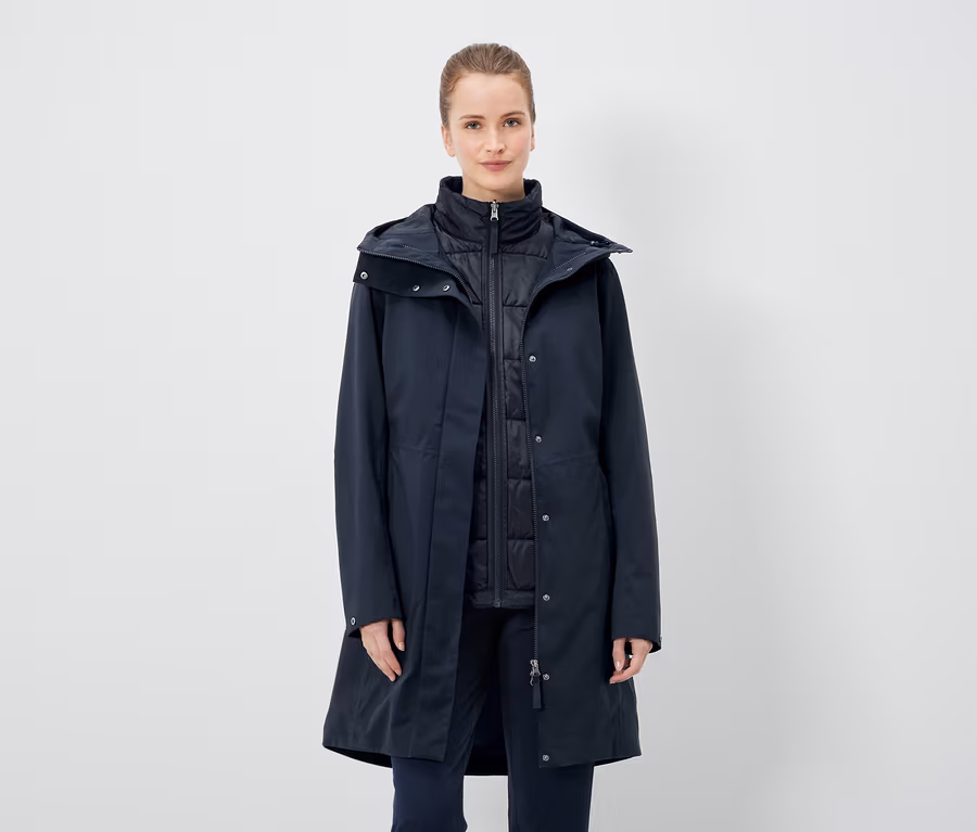- 3'ü 1 arada: Yağmurluk ve kapitone yelek, ayrı ayrı veya birlikte giyilebilir
