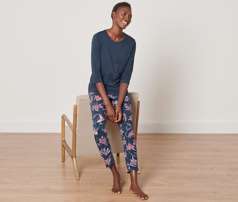 - Pijama üstü yuvarlak yakalı ve 3/4 kollu