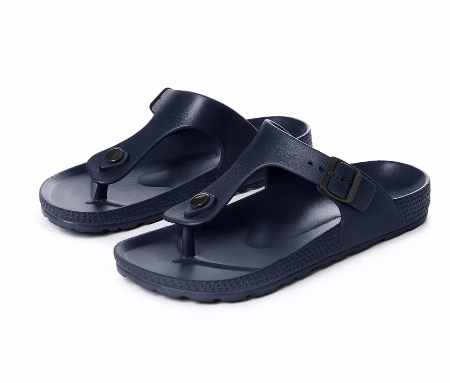 Parmak arası terlik plajda, yüzme havuzunda ya da evinizin bahçesinde ideal bir eşlikçidir. Şekillendirilmiş ayak tabanı ayağınızı uyumlu bir şekilde sarar ve son derece yüksek bir giyim konforu sağlar. Cilt dostu plastik deniz terliklerini hafif, elastik ve tabii ki tuzlu ve klorlu suya dayanıklı hale getirir. Tokası ile genişliği ayarlanabilir. Alt tabanı hafif profillidir, bu sayede fayanslarda veya ıslak ahşap zeminlerde de güvenli adımlar atmanızı sağlar.