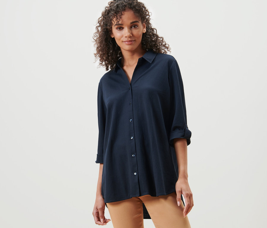 - Bu gömlek, sürdürülebilir ahşap fiberler içerir.