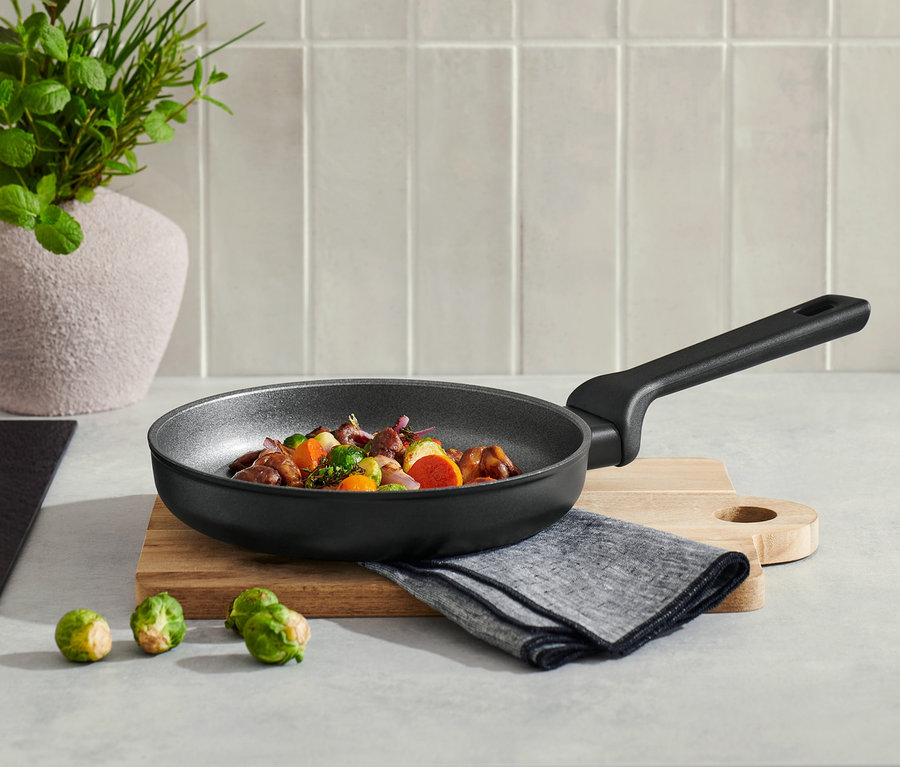 - PFAS içermeyen yapıştırmaz kaplamalı – yağsız pişirme için idealdir, yanmayı ve yapışmayı en aza indirir, çizilmeye karşı korur, temizlemesi kolaydır