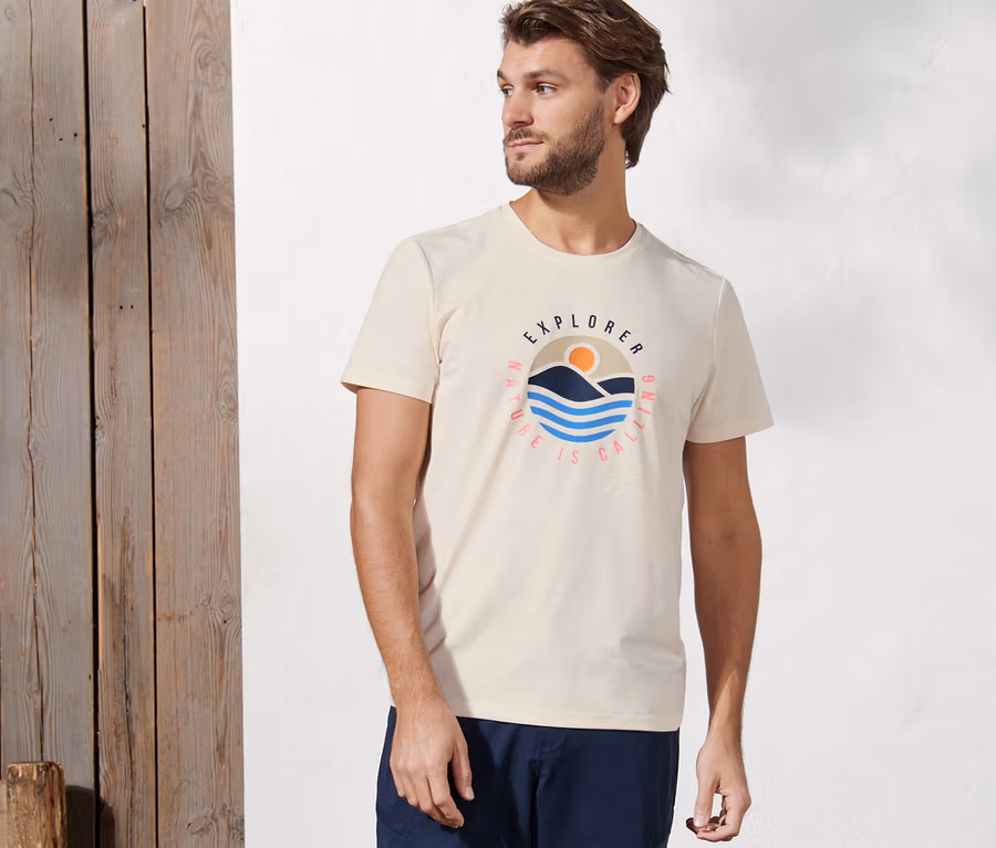 Baskılı Tişört, bej