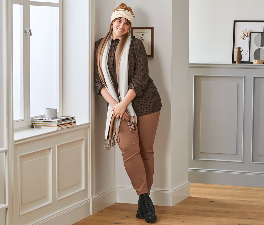 - Uyumlu renkte örgü atkı da çeşitler arasında mevcuttur
