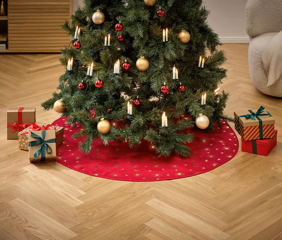 - Yılbaşı ağacının ayağını, kabloları vb. gizler, yere düşen çam iğnelerinin kolayca toplanmasını sağlar