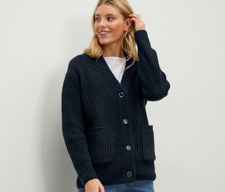 Ribanalı Kalın Örgülü Hırka, lacivert