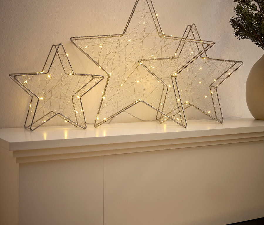 - Dekoratif mikro ışık zincirli 3D metal yıldızlar