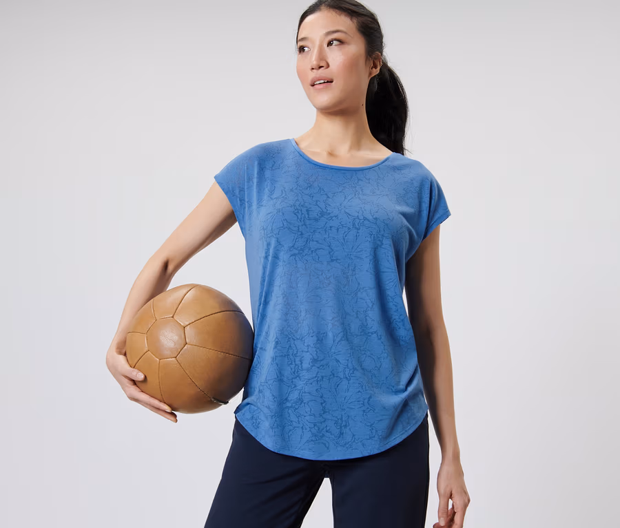 - Viskoz oranlı dökümlü kumaştan kadın spor tişörtü