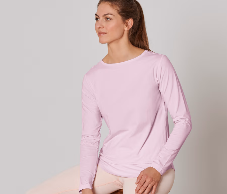 Organik Pamuklu Uzun Kollu Spor Tişörtü, Açık Pembe