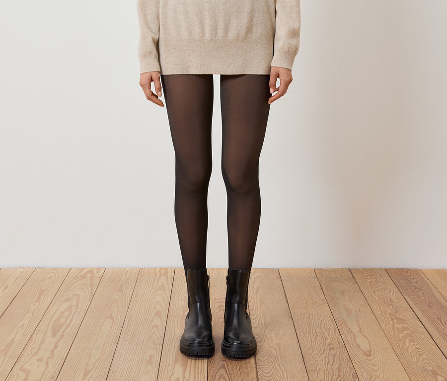 - Her iki katı yeniden doğru şekilde konumlandırmak için bu külotlu çorabı giydikten sonra bir kez uzunlamasına çekmenizi veya yıkamanızı tavsiye ederiz. Bu sayede muhtemel bir lekeli görünümü önlersiniz.