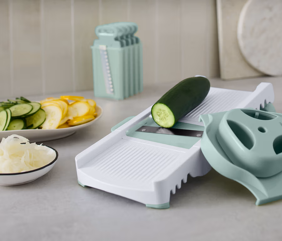 • Kaba ve ince rende, rende, dilimleme, jülyen ve tırtıllı kesme başlıkları ve saklama kutusu