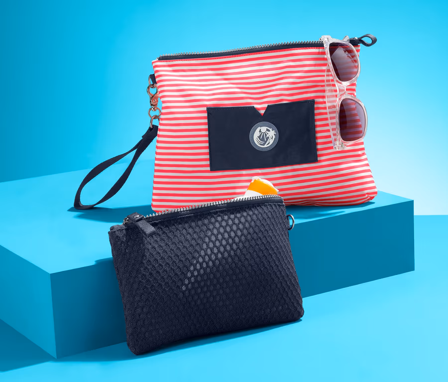 Her iki çanta da çok yönlü olarak kullanılabilir ve ayrıca en çok dayanıklı üst malzemesi ile puan toplayabilir. Her iki çanta da fermuarlı bir ana bölmenin yanı sıra çıkarılabilir taşıma kayışına sahiptir ve sadece nemli bir bezle silinebilir. Küçük çanta fileden üretilmiştir ve örneğin güneş sütü gibi plaj aksesuarları için uygundur. Büyük çanta ilave bir yan cebe sahiptir ve küçük bir silikon rozet ile süslenmiştir.