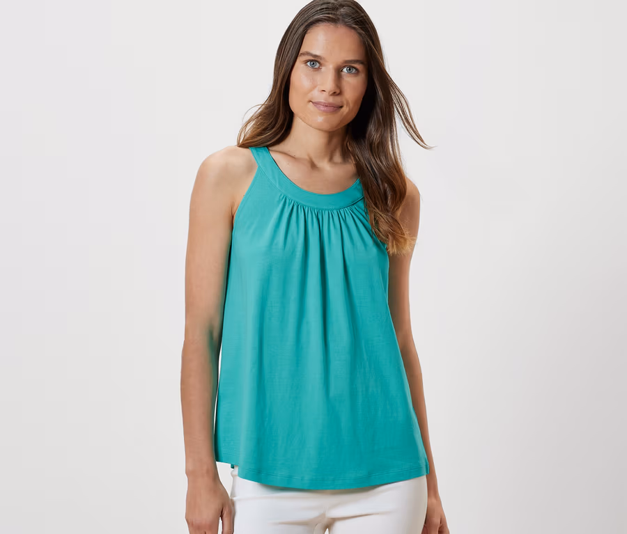 - Bu üst sürdürülebilir ahşap elyafı içerir.