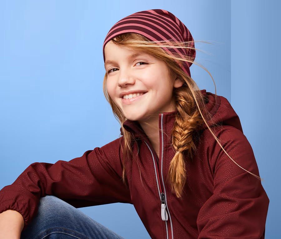 Biraz rüzgar kimseyi temiz havada oyun oynamaktan alıkoyamaz – ve bu çift taraflı cool bere ile asla öyle değildir: Yumuşacık Single Jersey kumaşı ile başa rahat bir şekilde oturur ve tamamen keyfinize göre tek renk veya çizgili yüzeyi dışarıda olacak şekilde giyilebilir. Bere formundaki şapka yüksek oranda organik pamuktan üretilmiştir. Elastan sayesinde formunu korur, mükemmel şekilde oturur ve ilave giyim konforu sunar.