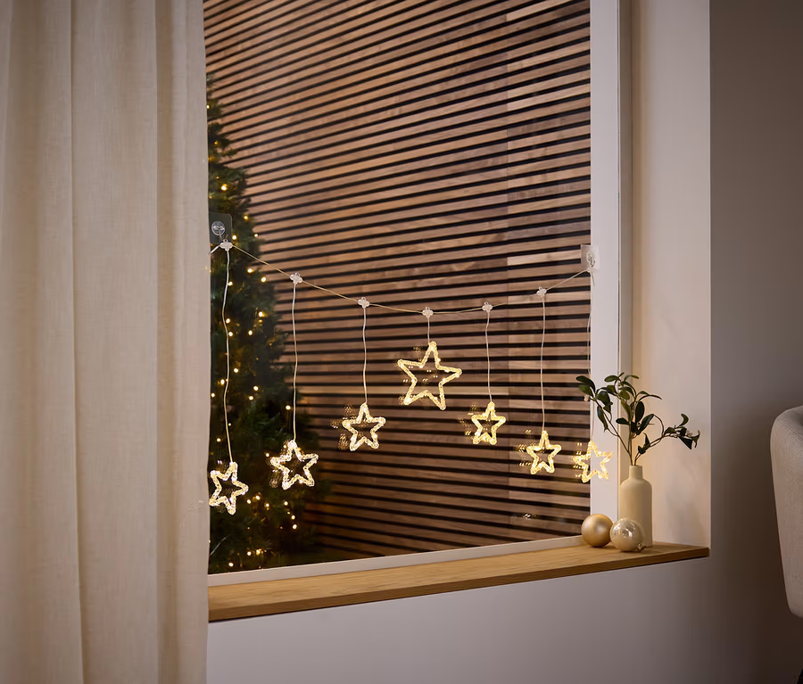 • Huzur verici bir pencere dekorasyonu için akrilik yıldızlar – ışık rengi sıcak beyaz
