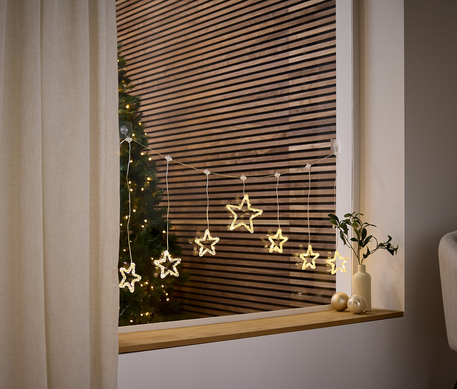 - Huzur verici bir pencere dekorasyonu için akrilik yıldızlar – ışık rengi sıcak beyaz