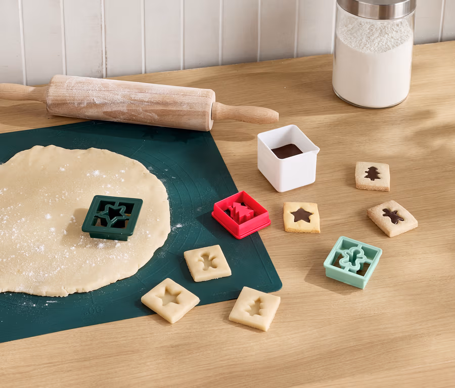 3 kurabiye kalıbı, 1 kap ve tarif içeren QR kodu dahildir