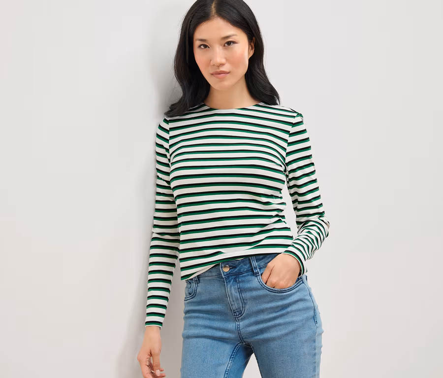 Çizgili Uzun Kollu Tişört, Çok Renkli