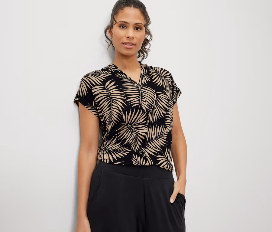 - Siyah üzeri bej rengi palmiye yaprağı baskılı
