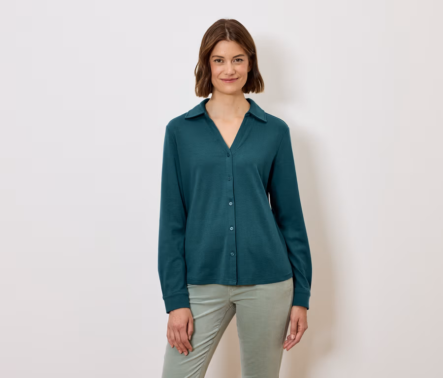 Düğme Yakalı Bluz Gömlek, Petrol